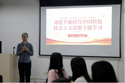 (团委书记钟丽珍老师做第一专题学习—“思想旗帜”)