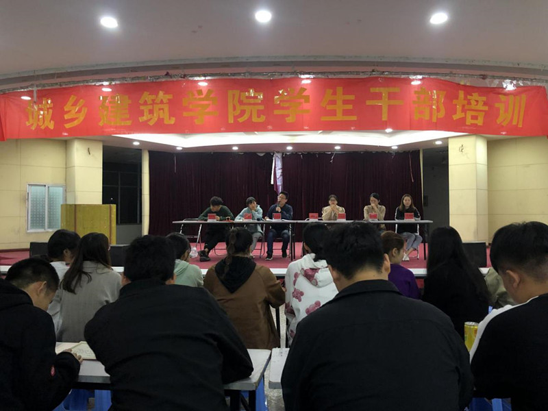 为庆祝新中国成立70周年,创建良好的育人环境,进一步提高我院学生干部队伍整体素质和工作能力,锻炼和塑造一支品质好、作风硬、能力强的学生干部队伍,切实发挥学生干部在“自我管理、自我教育、自我服务”中的作用。不忘初心、牢记使命,坚持跟党走。城乡建筑学院团委学生会于11月18日晚8点,在食堂四楼学术报告厅进行《学生干部培训》,由团委书记陈春福老师进行培训。辅导员余换新、黄静琳,以及全体院两委干部、干事等学生参与此次培训。
