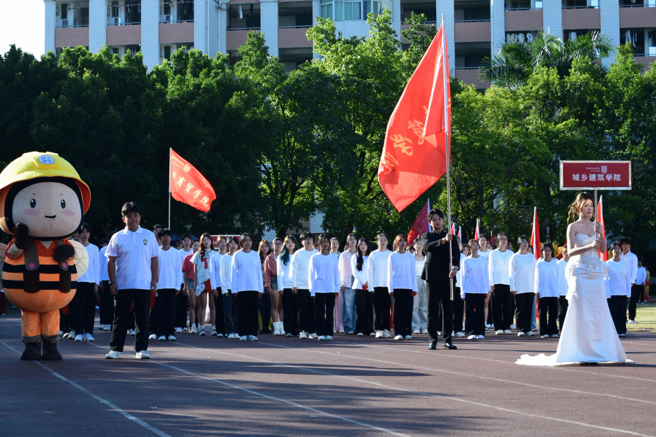 开幕式上,城乡建筑学院方阵身着整齐的服装,步伐铿锵、口号嘹亮,方阵中“小蜜蜂”卡通形象,头戴黄色安全帽,身着橙黑相间的工装,调皮可爱又彰显专业特色,倍受师生欢迎。比赛期间,运动员们在赛场上挥洒汗水、奋勇争先。短跑选手如离弦之箭,冲刺瞬间点燃全场激情;中长跑选手则以稳健的节奏和顽强的耐力展现坚持的力量;跳远和跳高赛场上,一次次精准的助跑与奋力的起跳定格为精彩瞬间;接力赛中,队员们默契配合,传递速度与信任。场外,学院的啦啦队和志愿者热情为运动员加油助威,维持秩序、递送饮水,为比赛顺利进行提供了坚实保障。