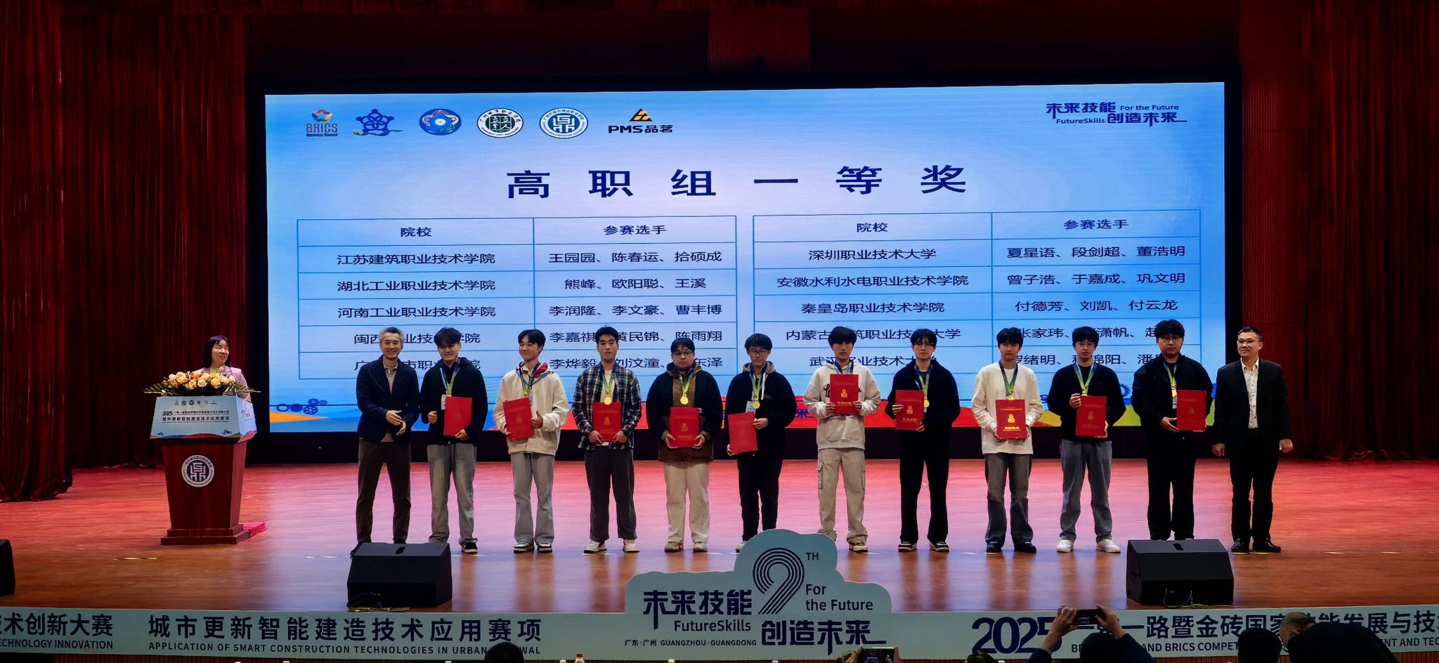 11月23日,2025"一带一路"暨金砖国家技能发展与技术创新大赛“城市更新智能建造技术应用赛项”全国总决赛在广州城市职业学院落幕。闽西职业技术学院城乡建筑学院的两支代表队双双获得全国金奖。