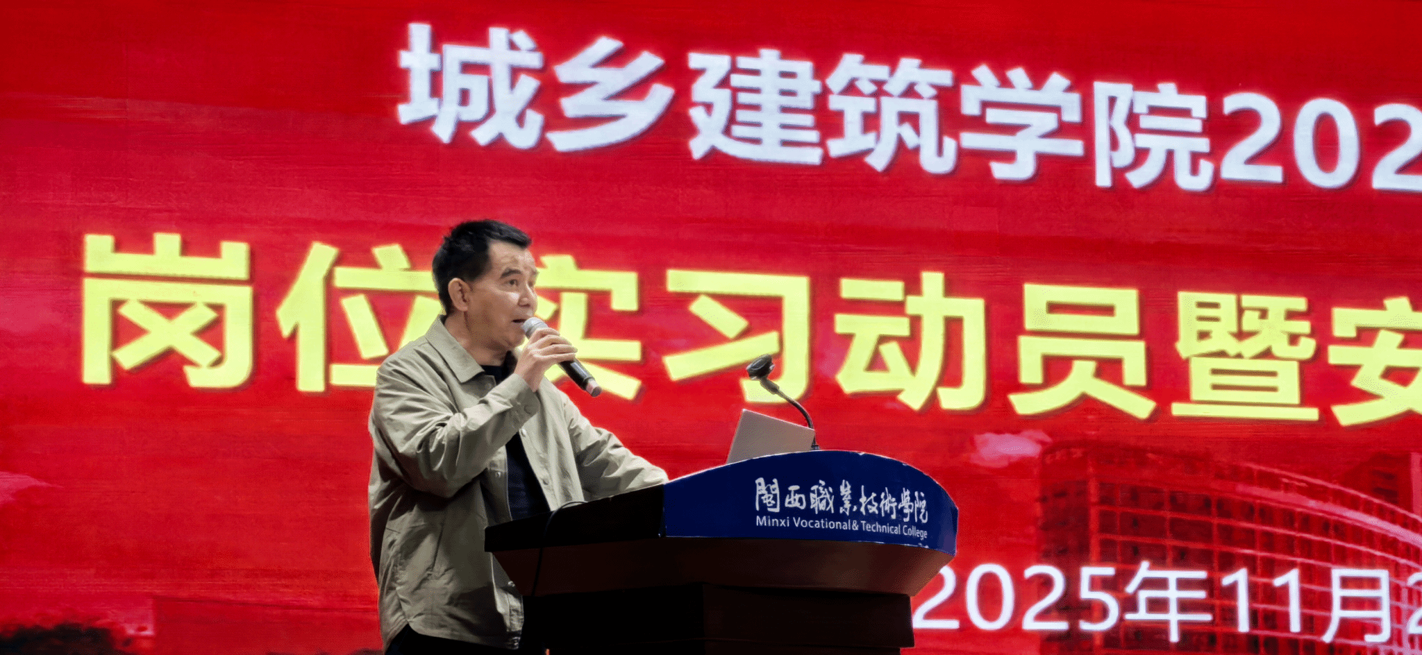 11月29日,城乡建筑学院2026届毕业生岗位实习动员暨安全教育在大匠堂举行。全体毕业生、院领导班子成员、专业负责人和辅导员参加。