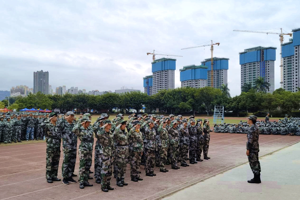 军训虽然迟到,但是没有缺席。自开训以来,全体新同学听从教官指挥、服务任务安排,从开始几天的高温到后来的大雨和断崖式的降温,他们克服各种困难,苦练军事技能,勤学红歌军歌,参加消防演练,学习国防知识,以集体荣誉为重,团结协作,互帮互助,不仅向全院师生展示军训成果,还决心在全校会操表演中勇夺佳绩。