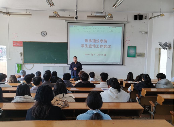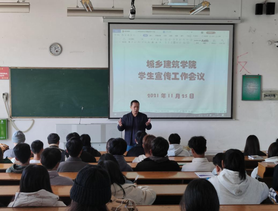11月25日,城乡建筑学院在良才楼201教室召开学生宣传工作会议,院两委学生干部、各班宣传委员参加。会议由院党委副书记蓝新华主持。
