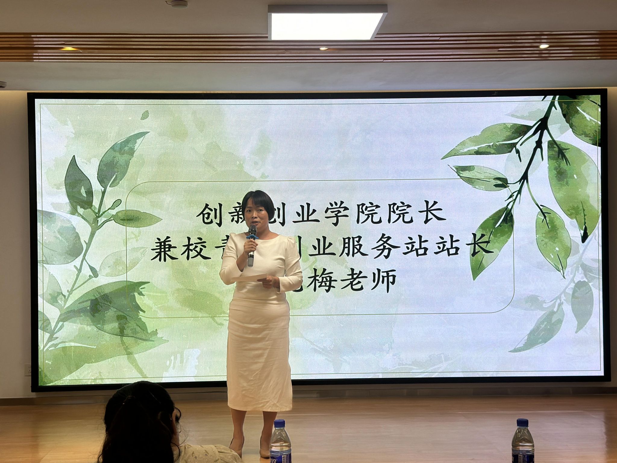 会议尾声,副院长陈建萍老师,与校青创两位指导老师依次上台发表讲话,对全体新成员的加入表示热烈的欢迎,并介绍了青创的主要职能,发展愿景,鼓励大家积极参与青创的活动,创新创业学院院长钟亮梅老师以“人是最宝贵的”“相信自己能‘赢’”“提升格局视野”“奋斗才会幸福”“团队的力量”五句话与大家分享,鼓励大家提升自己格局和认知,培育综合能力,加强团队协作,勇于探索创新,成就更好的自己!