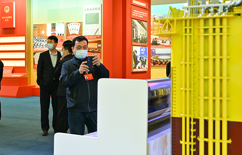 10月17日晚,参加党的二十大的代表们来到北京展览馆参观“奋进新时代”主题成就展。