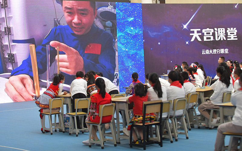 学生在云南省大理新世纪中学收看“天宫课堂”第三课(2022年10月12日摄)。新华社记者 陈欣波 摄