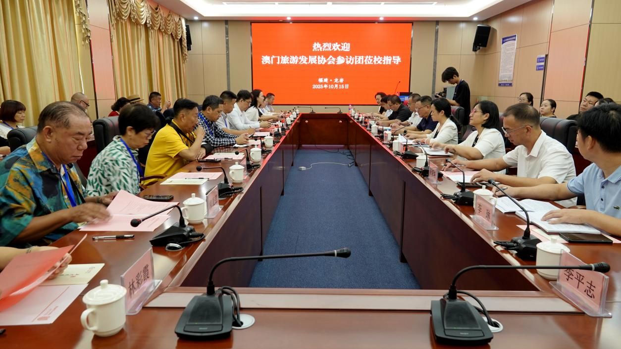 10月15日上午,澳门旅游发展协会参访团一行20人在会长姚瑶的带领下,莅临我校开展交流访问活动。市委统战部(市中华职教社)、市文旅局相关领导和人员陪同参访,校长梁俊平、副校长卢兆梅等校领导热情接待,学院党政办、宣传部(统战部)、对外交流合作处等相关职能部门负责人及文化与旅游学院师生代表参加交流活动。