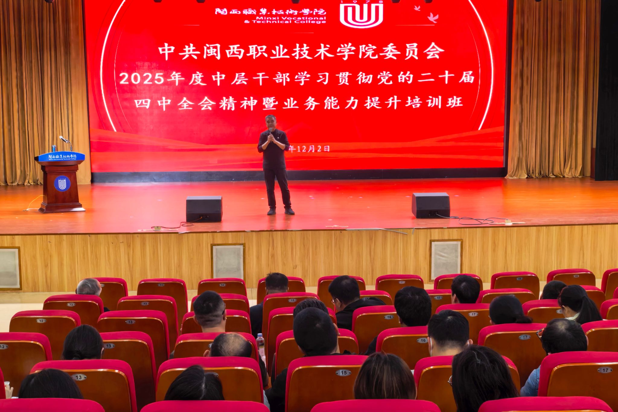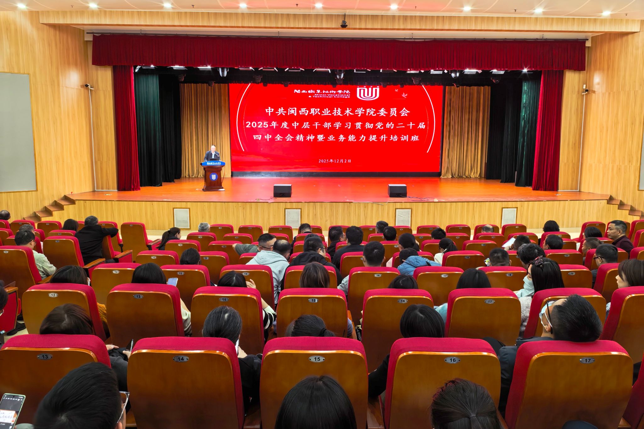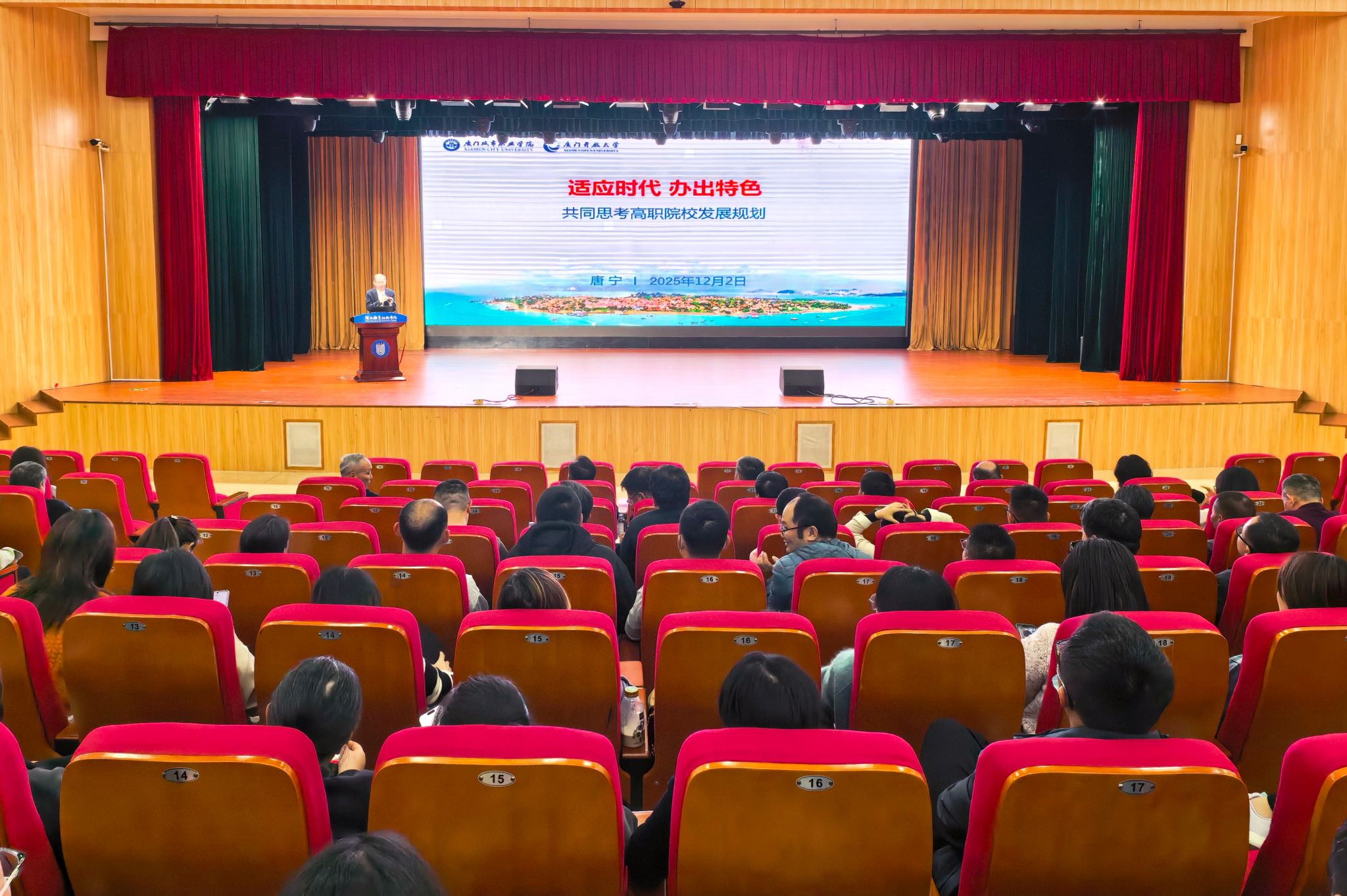 为深入学习贯彻党的二十届四中全会精神,科学谋划“十五五”发展,12月2日,我校特邀厦门城市职业学院党委副书记、校长唐宁教授莅校作题为《适应时代 办出特色 共同思考高职院校发展规划》的专题报告。全体校领导、教职员工参会聆听。校党委副书记、校长梁俊平主持了报告会。