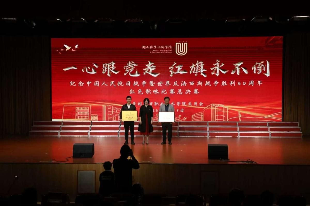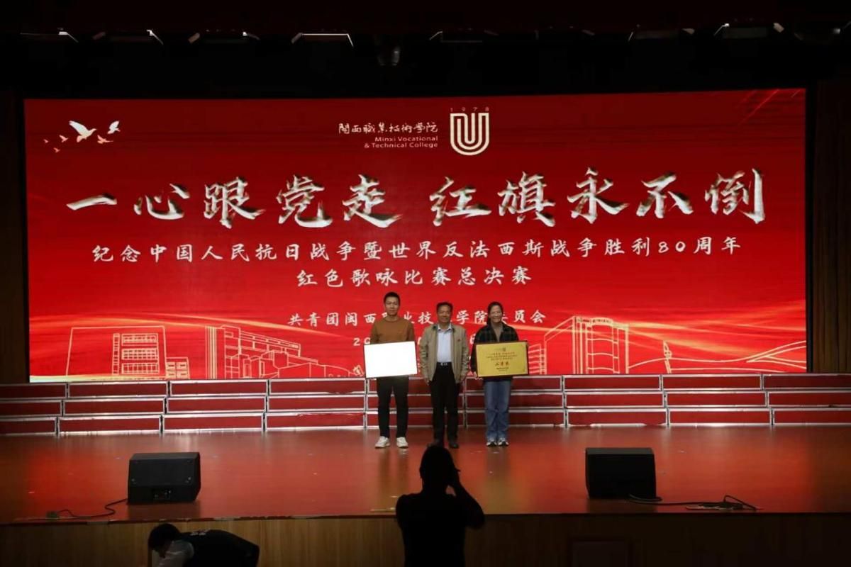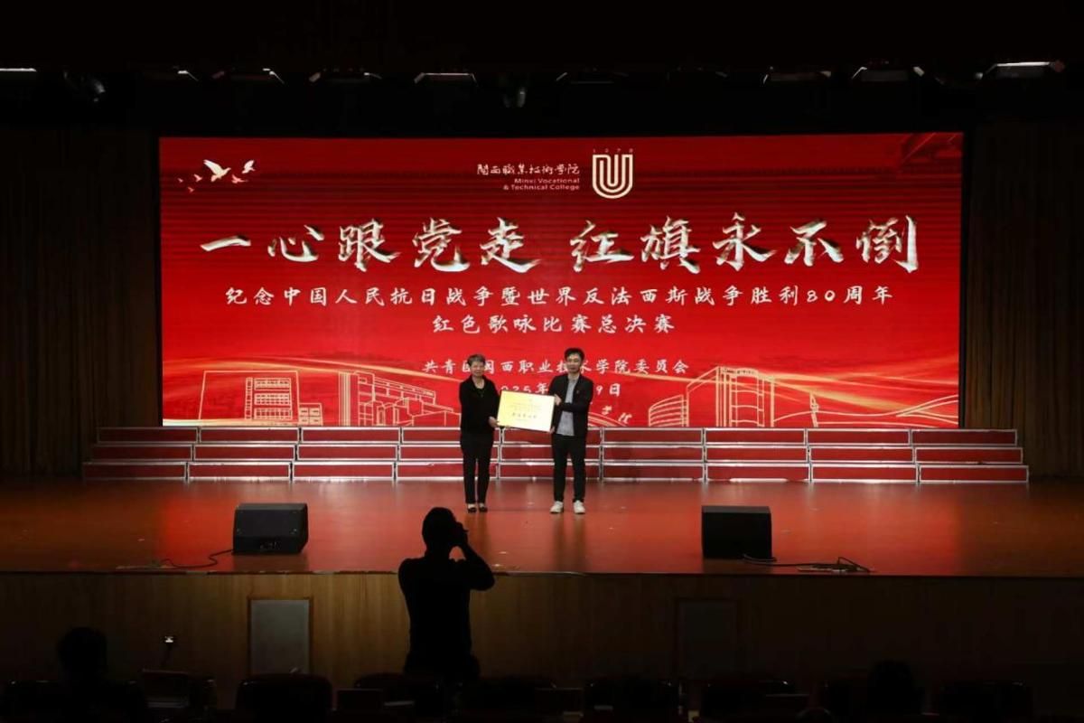 为深入学习贯彻党的二十届四中全会精神,传承红色基因、厚植爱国情怀,2025年12月9日下午,我校在大匠堂举行“一心跟党走 红旗永不倒”纪念中国人民抗日战争暨世界反法西斯战争胜利80周年红色歌咏比赛。在历经筹备、排练及院赛比拼后,进入总决赛,学校在家校领导、师生共1400余人参加了总决赛活动。