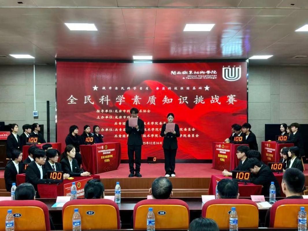 近日,校团委与龙岩市科技馆联合主办的“2025年闽西职业技术学院全民科学素质知识挑战赛”在我校顺利举行。本次赛事由信息工程学院团委和文化与旅游学院团委共同承办。龙岩市科协副主席徐锦清、校团委书记陈愉、龙岩市科技馆馆长严众能、新罗区科协副主席张平等嘉宾出席活动。