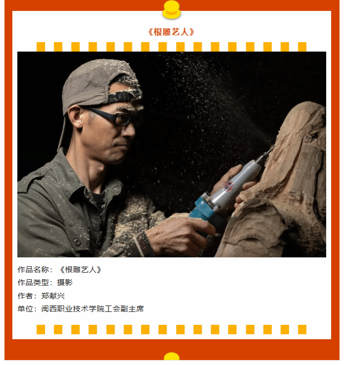 近日,第八届(2025)闽台港澳职工书画摄影联展入选名单揭晓,我校工会专职副主席郑献兴同志的摄影作品《丰收的喜悦》《根雕艺人》成功入选参展。