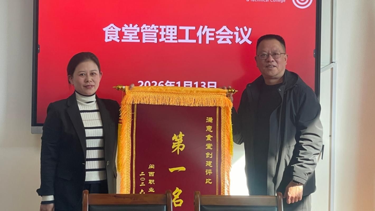 梁俊平校长、连玲娜副校长分别为获评“满意食堂”评比第一名的第二食堂、第二名的第三食堂颁发锦旗。