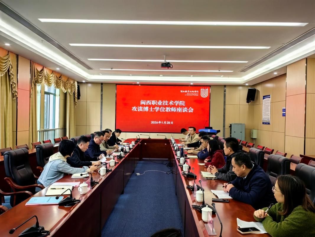 1月28日上午,我校在岩声楼二楼会议室召开在职攻读博士学位教师座谈会。梁俊平校长、林伟能副书记出席,相关职能部门负责人及在读博士教师参加会议。