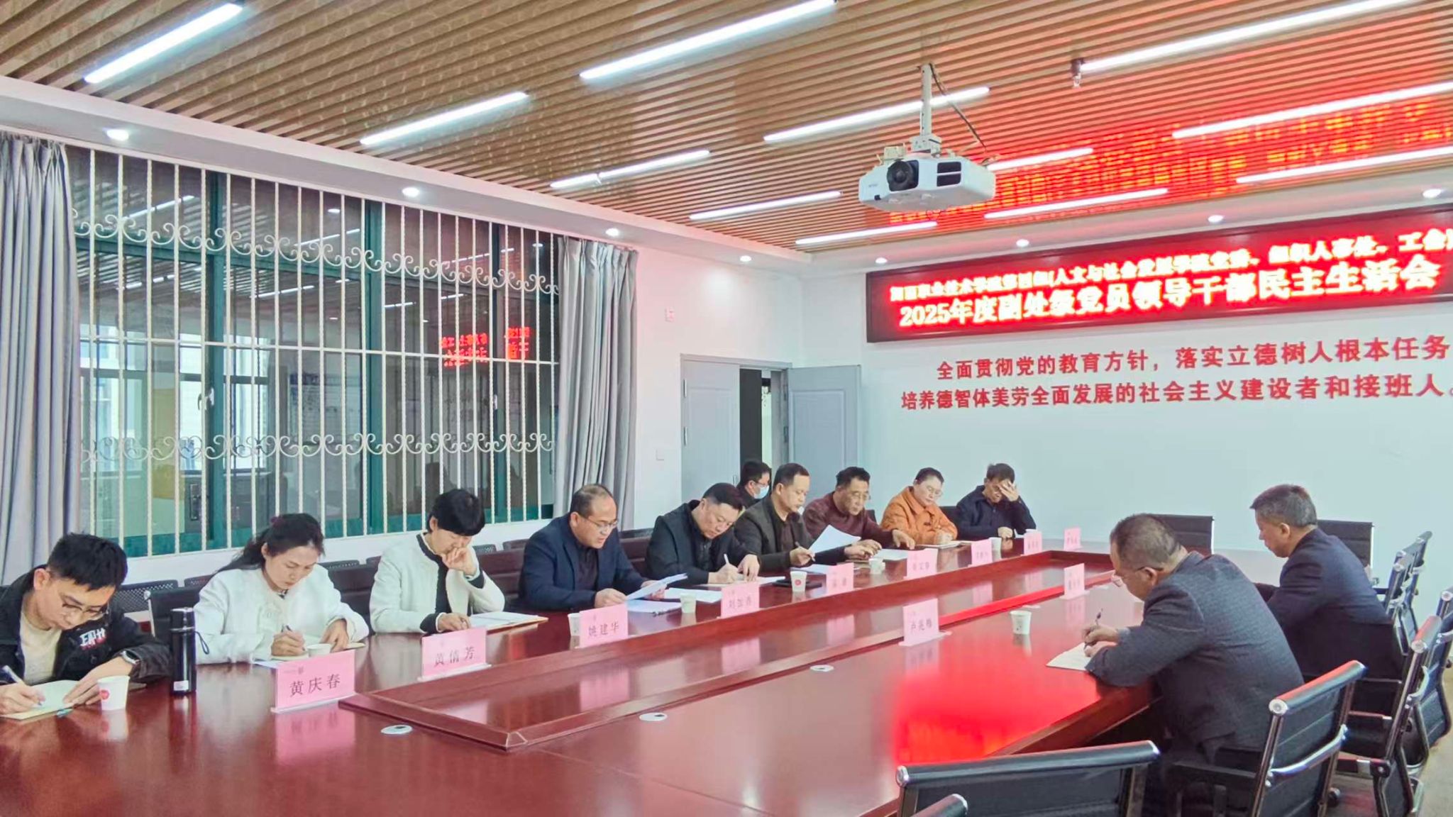 1月29日,闽西职业技术学院第四组(人文与社会发展学院党委、组织人事处、工会)2025年度副处级党员领导干部民主生活会在人文与社会发展学院810会议室召开。校党委委员、副校长卢兆梅带队督导,莅临现场指导并作点评。