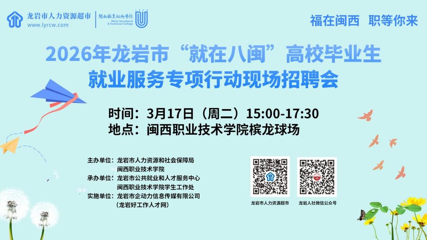 3月17日下午,我校联合龙岩市人力资源和社会保障局在槟龙球场成功举办“福在闽西 职等你来”2026年龙岩市“就在八闽”高校毕业生就业服务专项行动现场招聘会,校长梁俊平亲临现场指导。