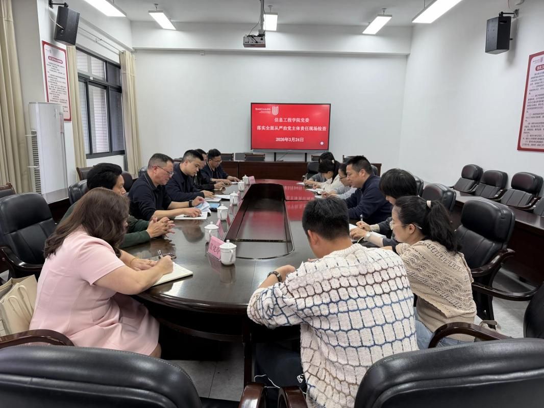3月24日,校党委副书记、校长梁俊平率第二检查组对信息工程学院党委2025年度落实全面从严治党主体责任情况进行检查。