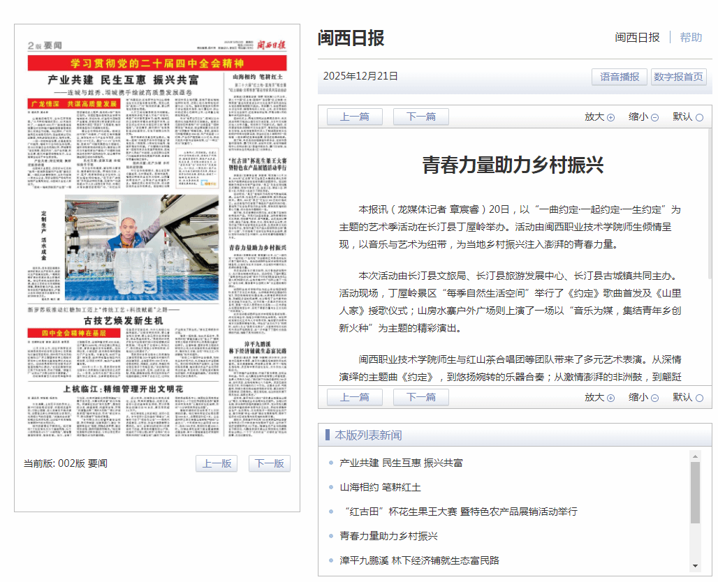 本报讯(龙媒体记者 章宸睿)20日,以“一曲约定·一起约定·一生约定”为主题的艺术季活动在长汀县丁屋岭举办。活动由闽西职业技术学院师生倾情呈现,以音乐与艺术为纽带,为当地乡村振兴注入澎湃的青春力量。