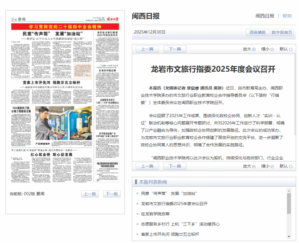 “闽西职业技术学院将以此次会议为契机,持续深化与政府部门、行业企业的全方位合作,不断探索文旅产业与职业教育协同发展的新模式、新路径,着力培养更多适应产业发展需求的高素质技能人才,为龙岩市文旅产业繁荣发展注入源源不断的人才动力与创新活力。”闽西职业技术学院有关负责人表示。