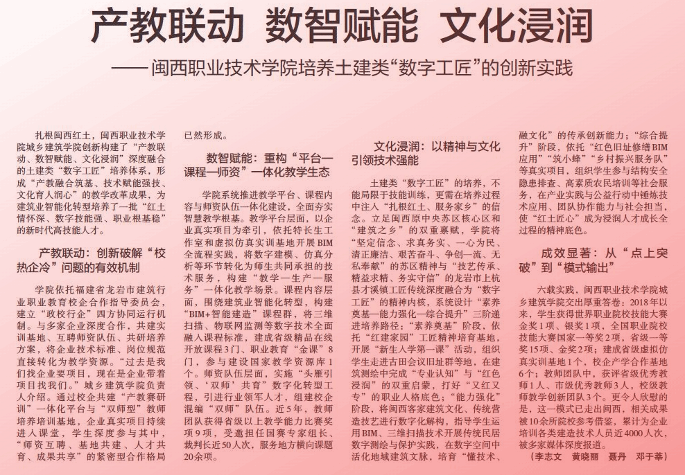 ——闽西职业技术学院培养土建类“数字工匠”的创新实践
