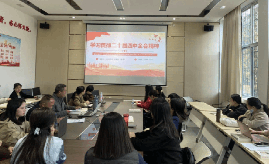 为深入学习贯彻党的二十届四中全会精神,切实把思想和行动统一到党中央决策部署上来,11月18日下午,马克思主义学院组织开展专题学习会。学院负责人以“学习贯彻党的二十届四中全会精神”为主题作宣讲报告,全体教师参加学习。