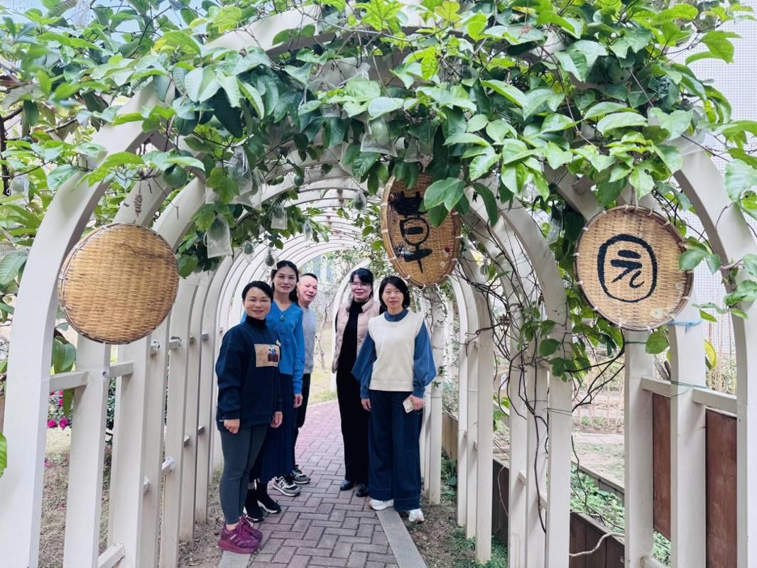 在红坊中心幼儿园园长谢彩萍的陪同下,学院教师团队实地考察了园所环境创设与中草药实践基地,详细了解该园在中医药文化课程建设方面的实践探索。园内师生共同培育的二十余种药用植物、自制中医药主题手工作品,展现了园所将传统文化融入幼儿教育的初步成果。