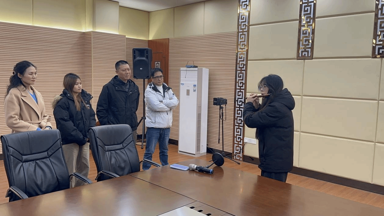 活动伊始,龙岩市汉剧传习中心刘馆长等相关负责人现场聆听了学生的笛子等民乐演奏,对同学们扎实的专业功底给予充分肯定。随后,双方围绕深化校企合作、提升实践教学质量开展深度座谈,明确将该传习中心设为表演艺术专业的社会实践实训基地。学生可依托基地开展实践学习,参与传习中心民乐团日常排练及演出活动,在实践中锤炼演奏技艺、积累舞台经验,深化对传统戏曲伴奏艺术的理解与运用。