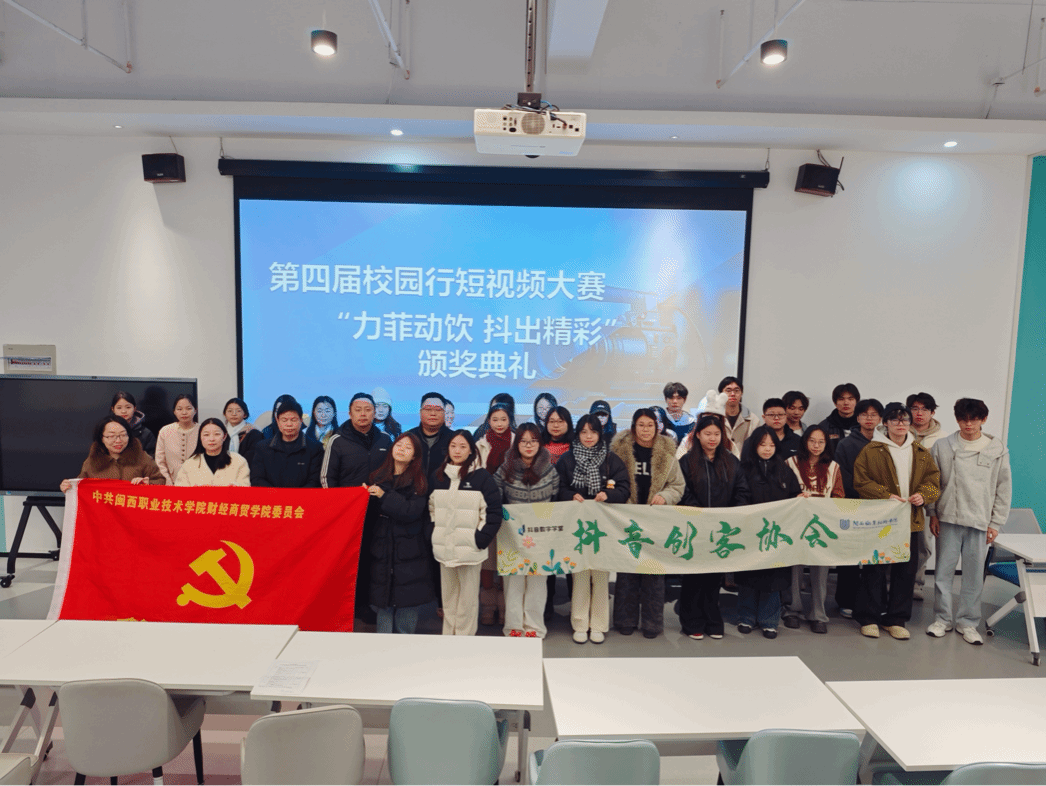 为深化短视频课程教学改革,以实战提升学生实操能力与业务经验,发掘技能人才,我校抖音创客协会依托校企合作企业福建省力菲克药业有限公司“力菲动饮人参维生素饮品推广项目”,于2025年12月22日至2026年1月7日在校本部成功举办“力菲动饮 抖出精彩”第四届校园行短视频挑战赛。本次赛事由闽西职业技术学院、抖音数字经济产业学院主办,福建省力菲克药业有限公司、共青团闽西职业技术学院委员会及抖音创客协会联合承办,为闽大学子提供宝贵的实践平台。