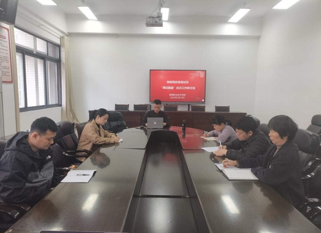 为深入贯彻落实国家“学历证书+若干职业技能等级证书”制度要求,积极响应福建省职业技能鉴定指导中心发布的《关于开展职业技能等级认定“课证融通”试点工作的通知》(闽劳鉴〔2026〕6号)文件精神,作为“物联网安装调试员”职业试点牵头院校,我校于2026年3月10日下午成功举办了该工种“课证融通”试点工作研讨会。