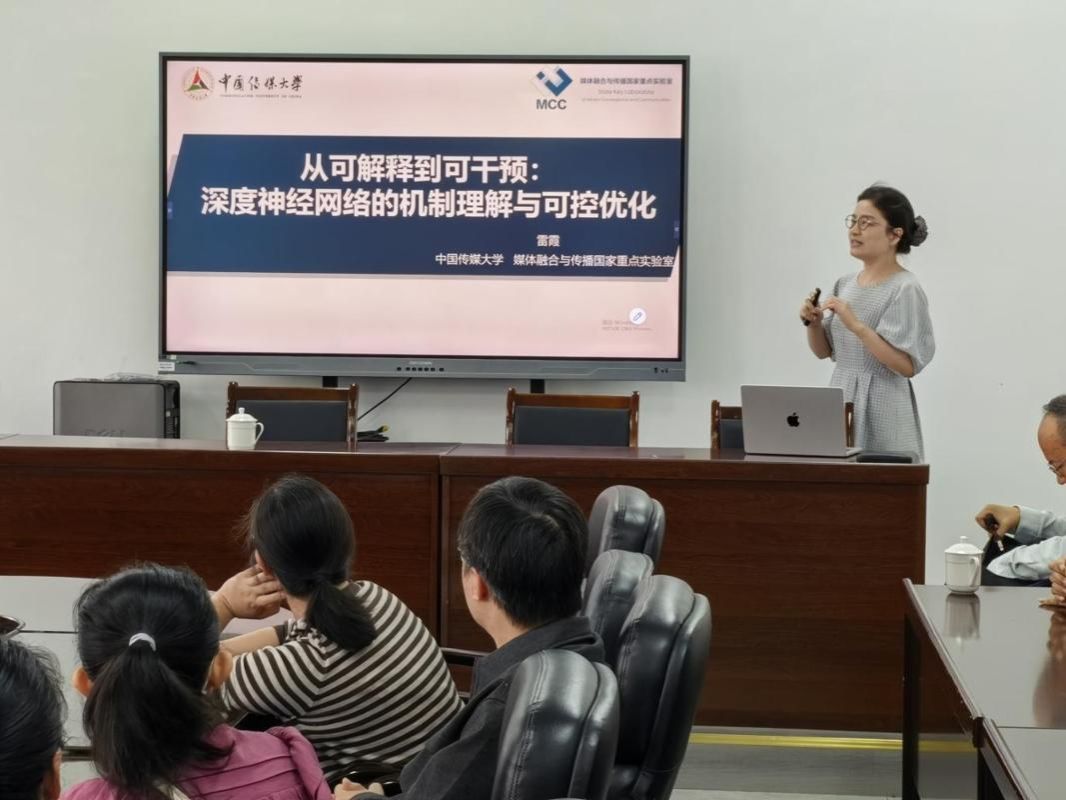 雷霞老师以《从可解释到可干预:深度神经网络的机制理解与可控优化》为题,系统梳理了深度神经网络可解释性研究从“被动理解”向“主动干预”的演进趋势,介绍了残差流、多头注意力等关键可解释对象及定位与调控干预技术,探讨了面向大模型透明性与可信性的优化路径。