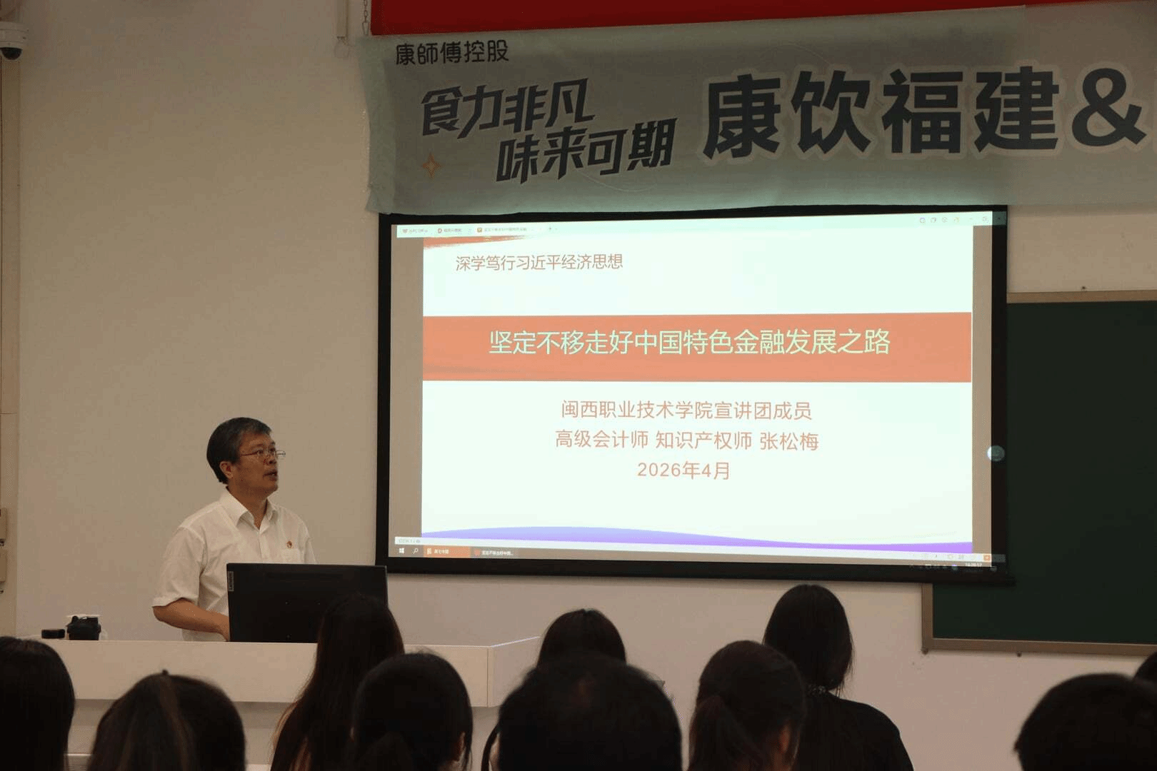 为深入推动习近平经济思想进教材进课堂进头脑,4月21日下午,校宣讲团成员、校离退休党总支第一支部党员、高级会计师、知识产权师张松梅在万源楼实训室E为财经商贸学院学生开设学习宣传习近平经济思想专题系列讲座。财经商贸学院团委负责人、入党积极分子、青马班学员、2024级和2025级团员学生代表参加系列宣讲活动。宣讲活动由校宣传部(统战部)联合财经商贸学院党委、马克思主义学院共同主办,校离退休党总支联合承办。