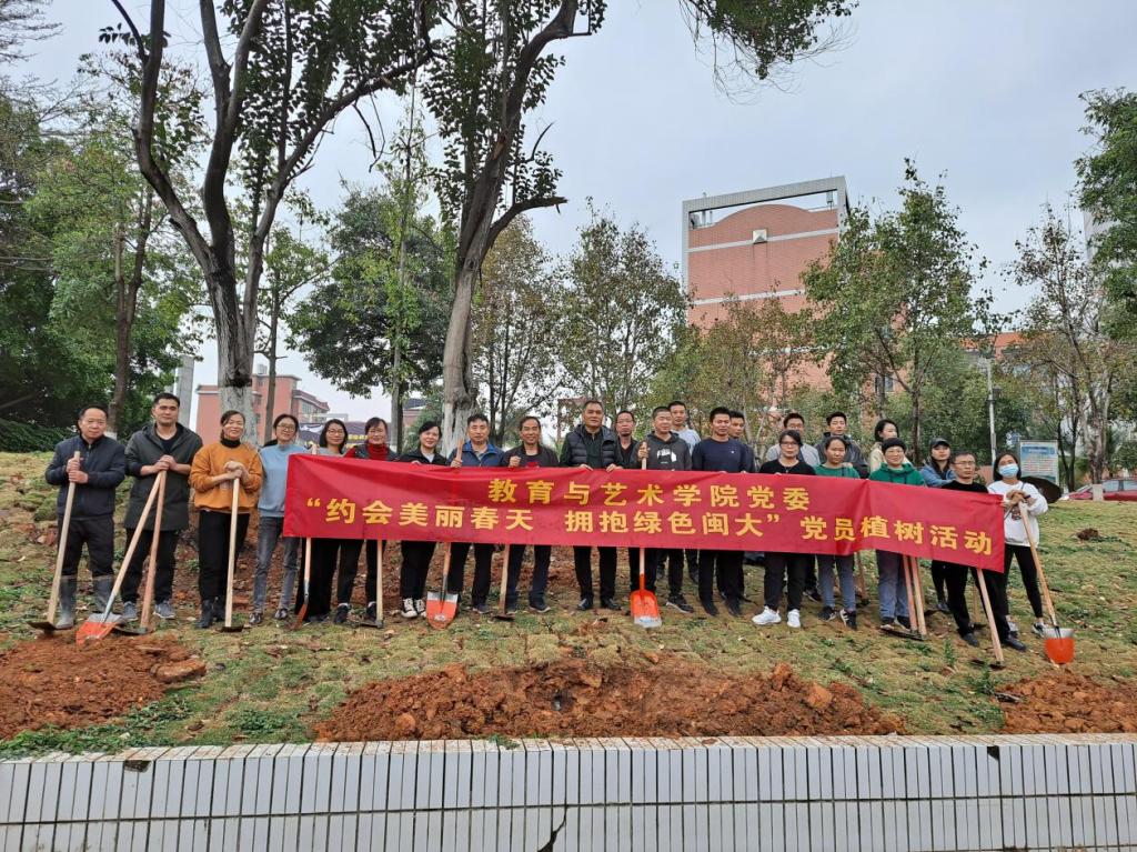和风三月,万木葱茏,生机盎然。为增强教职工的环保和绿化意识,营造人人植树,美化环境的良好氛围,3月5日下午,在植树节即将来临之际,教育与艺术学院党委开展了“约会美丽春天 拥抱绿色闽大”党员植树活动,让大家在这个春风和煦的季节里,感受春的脚步,吸收春的气息。