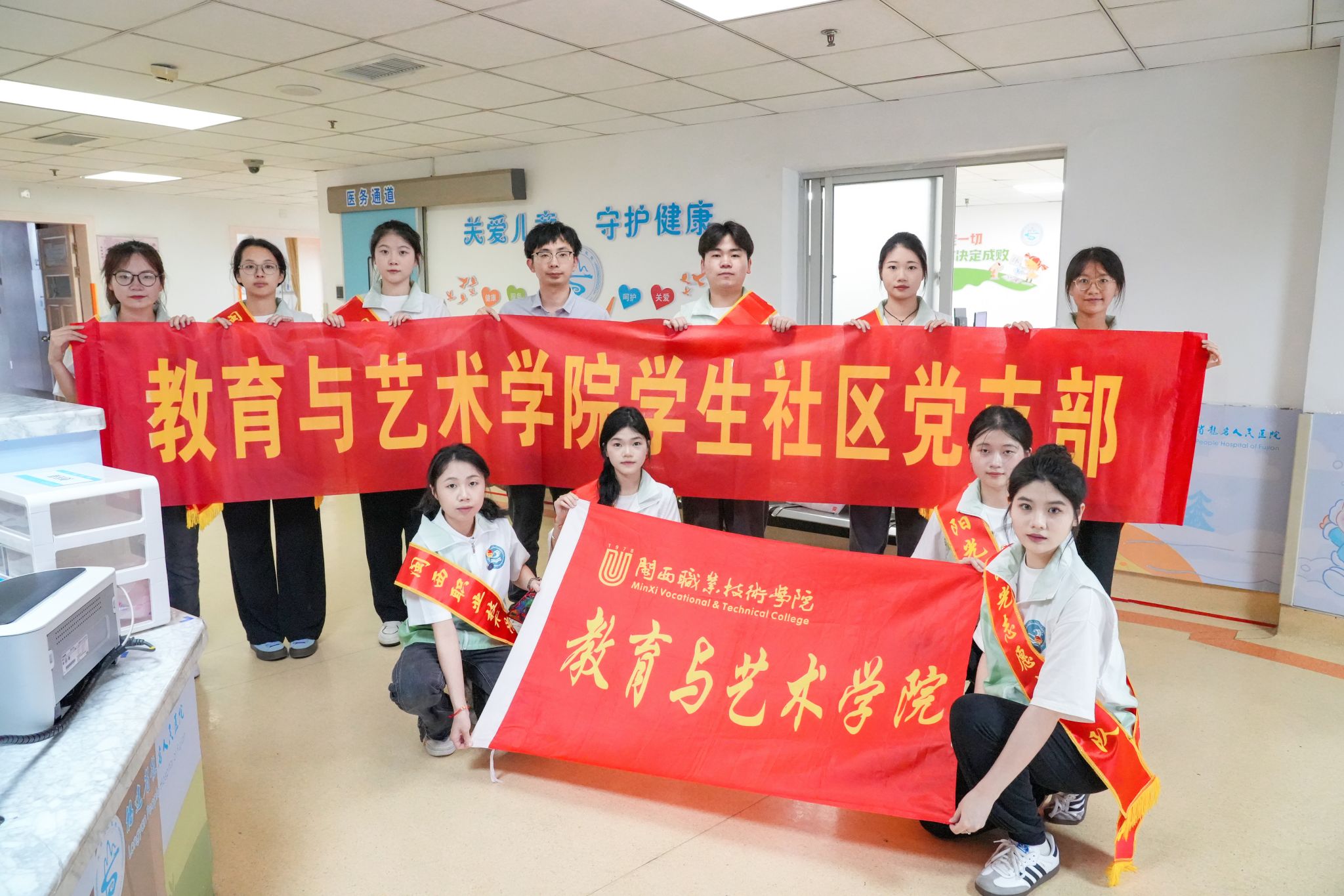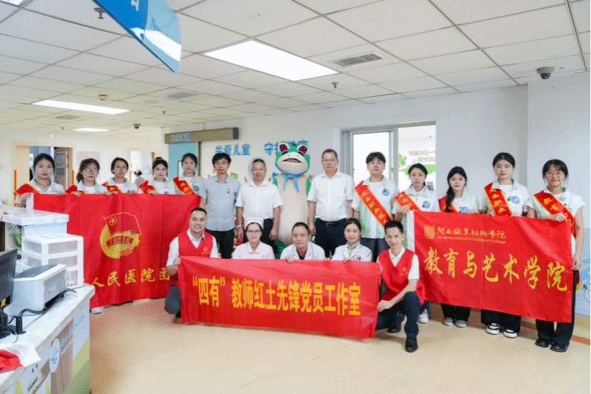 教育与艺术学院党委持续开展党建品牌“红土先锋四方联动 精准帮扶共育优师”特色活动。在“六一”国际儿童节来临之际,为了让在医院住院的小朋友们度过一个快乐的节日。2024年5月30日,教育与艺术学院第一党支部“四有教师”红土先锋党员工作室携手学生社区党支部到龙岩人民医院儿保科开展“情暖六一,携手童行”党建志愿活动。