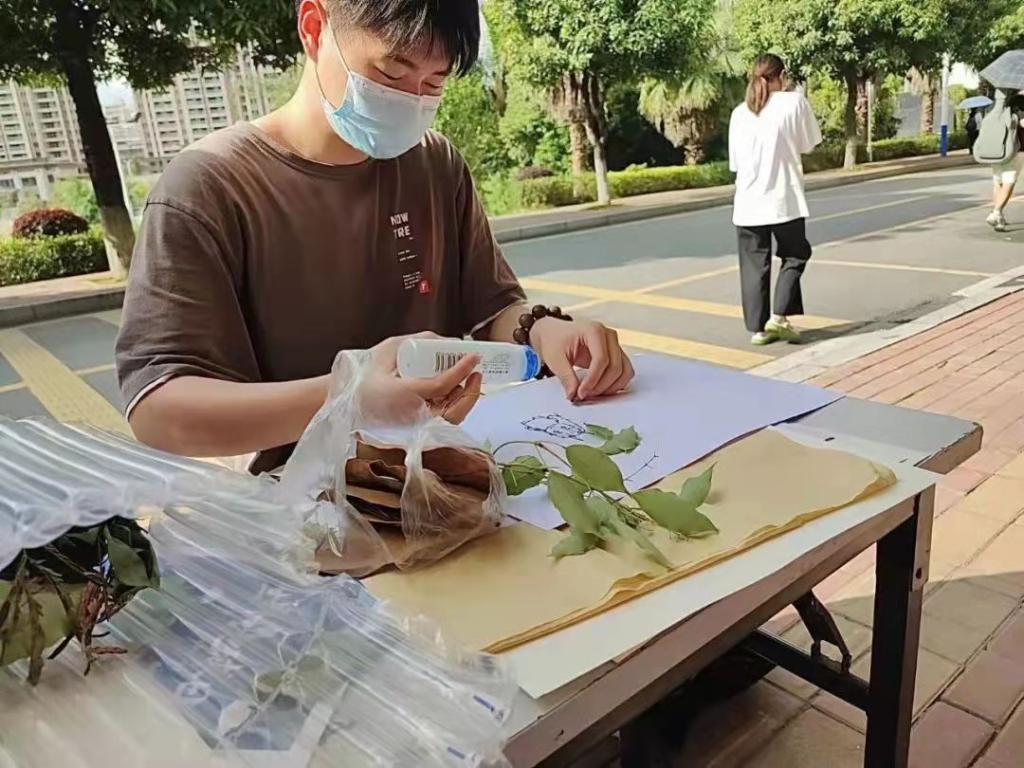 在活动开始前,志愿者们首先做好分配、分组工作,并对校园内的树叶进行有秩序的清掏、清扫,将一些形状独特、纹路各异的树叶收集起来,制作成绿色环保标识画。在活动中,同学们按照事先设定的图案寻找适合的干树叶,通过大胆创新,制作出形态各异、活灵活现的树叶画作品。此外,志愿者们还通过分发宣传单,发布环保微视频等方式,向同学们分享生活中节约用水,保护环境的方法,以此提高大家的环保意识。