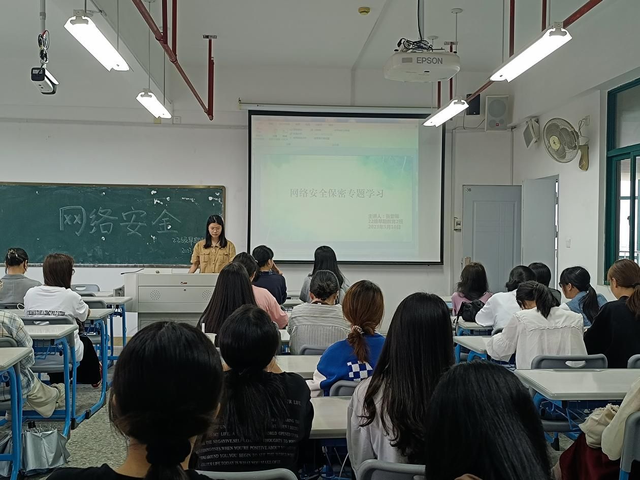 21级学前教育6班团支部引用多起违反保密规定的案例,为同学们介绍了关于保密法的相关法律法规,增强同学们对保密法律法规的认识。22级学前教育1班和4班团支部对国家秘密如何保护进行重点讲述,介绍了国家秘密的产生及密级、国家秘密的来源和保护,从“基本概念、保密管理、法律责任”三个方面出发,为同学们讲解了新形势下对做好新时期保密工作的基本要求及重要性,进一步增强同学们的保密工作意识,提高对保护国家秘密的自觉性。22级早期教育2班团支部指出在信息网络时代,网络的特性在给工作学习生活带来便利和快捷的同时,也成为敌对势力窃取情报、渗透破坏的主要渠道。网络安全与国家安全有着紧密的联系,同许多其他方面的安全都有着密切关系,希望同学们在文明上网的同时做到谨慎发言。