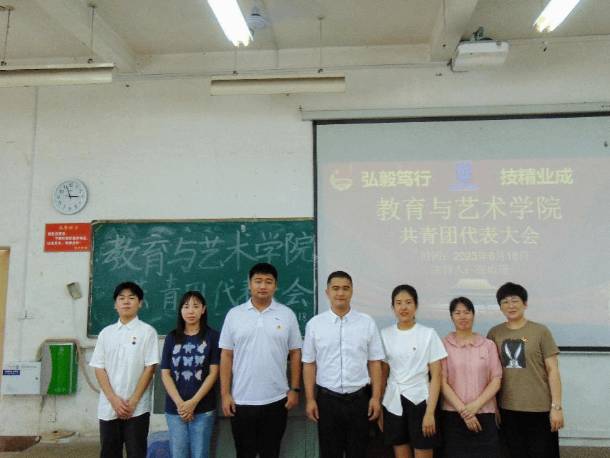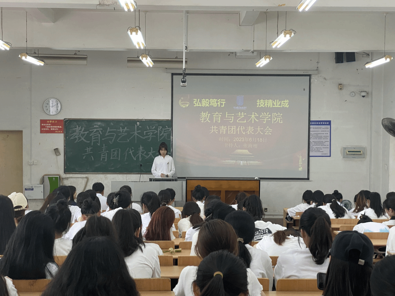 2023年6月18日,教育与艺术学院团委于良才楼101教室召开共青团代表大会,共有共青团员114人,预备党员8人参加。