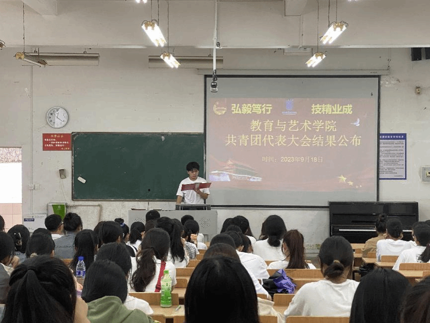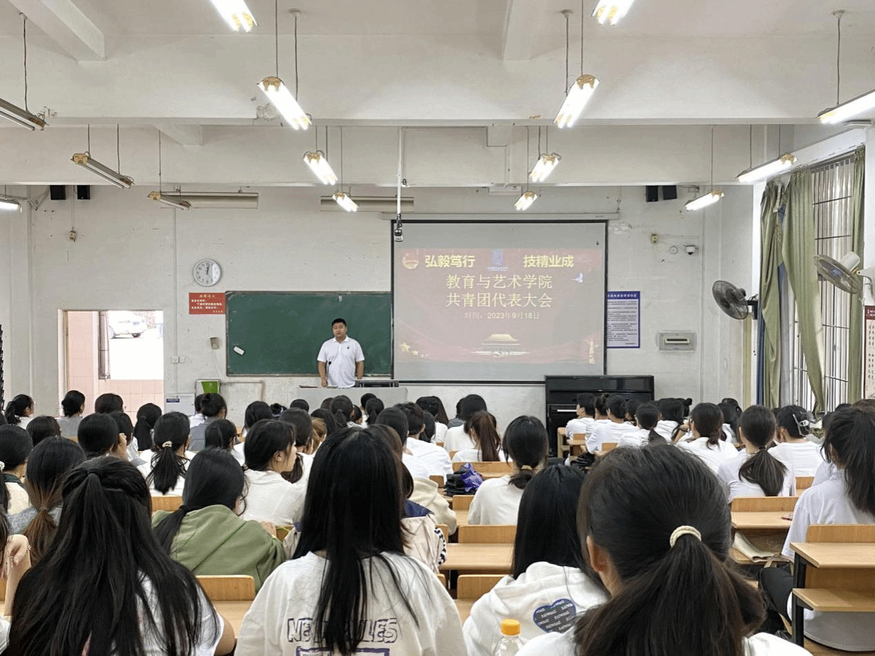 2023年9月18日,教育与艺术学院于良才楼101教室召开共青团代表大会,此次大会共有123名共青团员参加。