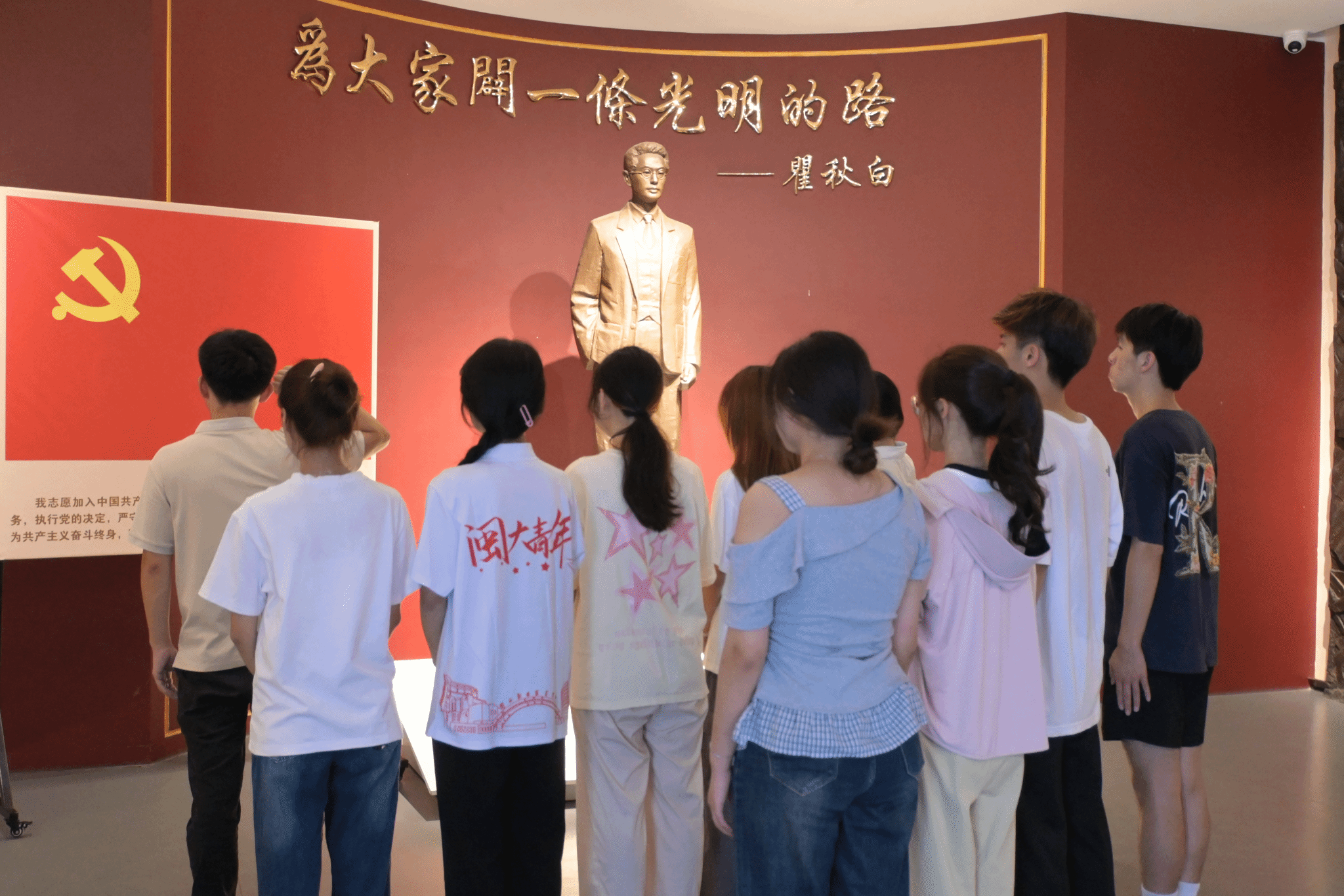 此次活动中,大家先后参观了福建省苏维埃政府旧址、瞿秋白烈士纪念馆、杨成武将军纪念馆与福音医院旧址等地,重走了红色道路,追溯波澜壮阔的革命记忆。在瞿秋白烈士英勇就义九十周年之际同学们来到瞿秋白烈士纪念馆,通过珍贵的历史文物和详实的资料,同学们深刻感受到他坚定的共产主义信仰和无私奉献的精神。来到苏维埃政府旧址,同学们见到了曾经见证瞿秋白同志最后时光的狱外石榴树,九十年的时光悠悠流转,墙外的世界也早已天翻地覆,可瞿秋白的故事,依旧会在世上代代传颂。在杨成武将军纪念馆,同学们被将军英勇善战、屡立战功的事迹所打动,领悟到革命军人保家卫国、不畏牺牲的高尚情怀。而福音医院旧址的参观,更让同学们深刻体会到革命年代医疗工作者的奉献精神。本次活动还以建党节为契机,深化入党仪式教育。在鲜红的党旗下,同学们庄严宣誓,坚定的誓言在空气中久久回荡,让红色基因、革命薪火代代传承。