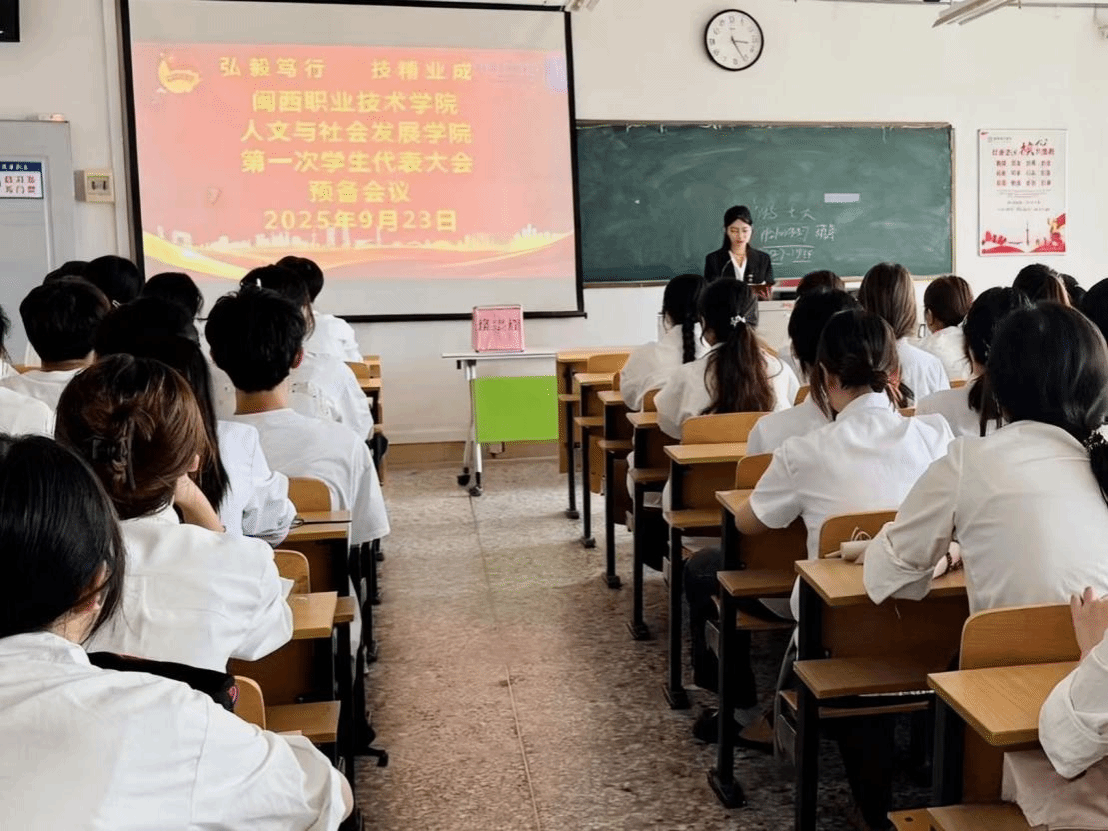 2025年9月23日,人文与社会发展学院在岩声楼711教室召开第一次学生代表大会,大会共有42名学生代表参加。本次会议由人文与社会发展学院(原教育与艺术学院)学生会执行主席庄妍主持,学院团委书记黄庆春出席本次会议。