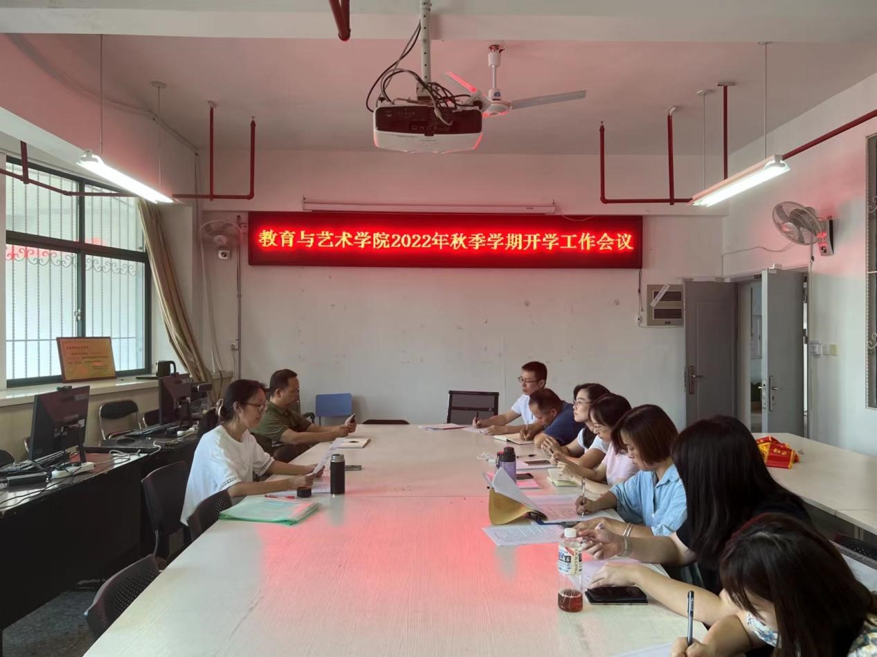 为了做好开学季工作,教育与艺术学院按照学校部署,认真做好各项工作。首先于8月23日下午学院在岩声楼八楼会议室召开2022年秋季学期开学工作会议。学院党政领导、各专业主任、辅导员、秘书参加会议,会议由学院党委负责人李瑛主持。会议第一时间传达了23号上午2022年全省秋季学期开学视频会和学校党委卢伟耀书记讲话精神。对开学季工作提出相关要求,一是守土有责,要求大家根据工作分管领域,履行工作职责,高度重视疫情防控工作,落实全省秋季学期开学视频会和卢伟耀书记讲话精神,落实闽西职院[2022]43号文要求;二是28日召开全院教职工大会进一步传达、学习有关会议、文件精神,同时要求辅导员向学生传达、学习有关会议、文件精神,做到严格落实疫情防控工作要求;三是按照学校要求做好师生返校管理工作及开学准备各项工作;四是以群建院,做好人才培养方案修订工作;五是持续推进双高校建设各项工作。