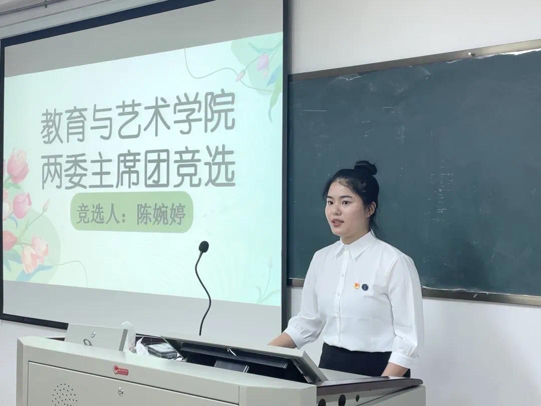 2022年5月20日和5月21日,教育与艺术学院于综合楼704和711教室分别进行第三届两委“主席团”和“部门干部”的换届选举大会。参加本次大会的有教育与艺术学院党委书记李瑛老师、院长李文春老师、院党委副书记曹熠城老师、院团委书记钱雪梅老师、辅导员黄磊老师、辅导员陈钰青老师,以及20级两委会干部、21级班级代表。