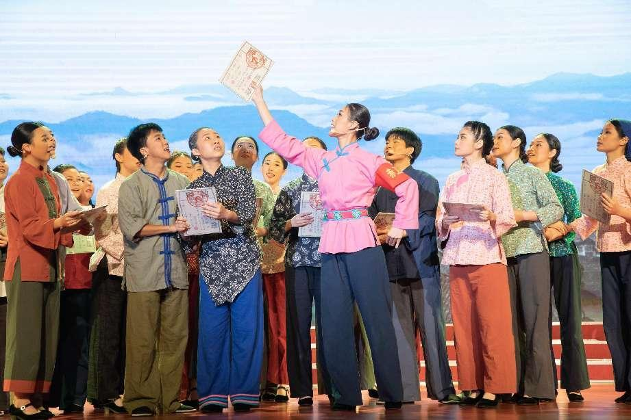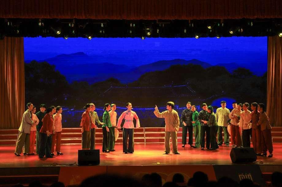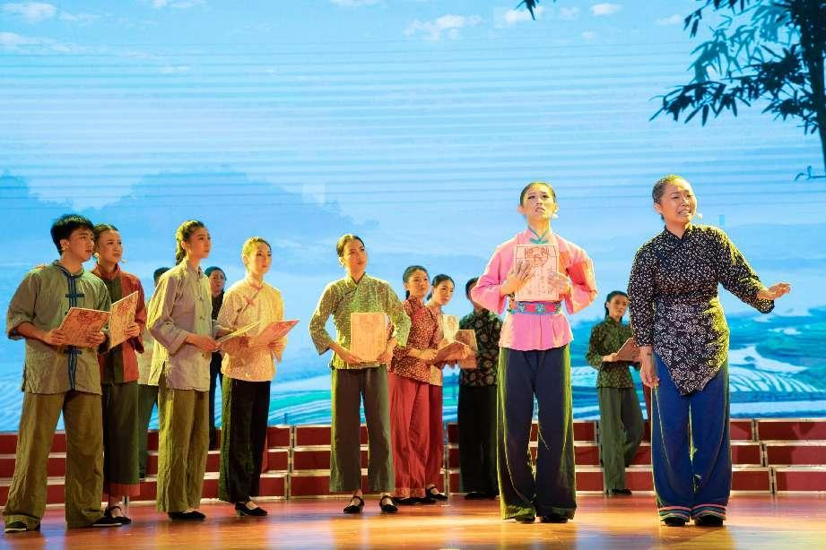 本次汇演活动从5月4日持续至5月13日共九场演出,由各二级学院的学生及校合唱团上演的九个表演组成。由教育与艺术学院20级、21级部分学生参演的龙岩山歌戏《红嫲》则在第二个节目登台亮相。该节目主要叙述土地革命时期,闽西人民在党的领导下以各种方式坚持斗争,保卫土地革命果实,创造闽西老区“二十年红旗不倒”的革命奇迹。剧目以"分田﹣夺田﹣保田”为主线,融合丰富的民情风俗表演,全面展现闽西儿女听党话、跟党走、任何困难都催不倒、压不垮的坚定信念和意志品质。最后,文艺汇演在全体师生共同演唱的歌曲《光荣啊!中国共青团》中走向尾声,由我院主演的龙岩山歌戏《红嫲》也在此次文艺汇演中荣获三等。