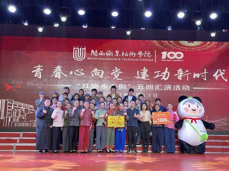 为庆祝中国共产主义青年团成立100周年,弘扬五四文化精神,2022年5月13日晚,闽西职业技术学院庆祝建团百年“红旗永不倒”五四文艺汇演活动在大匠堂隆重举行。校党委卢伟耀书记、梁俊平校长等校领导及教育与艺术学院全体师生一同观看本次汇演。