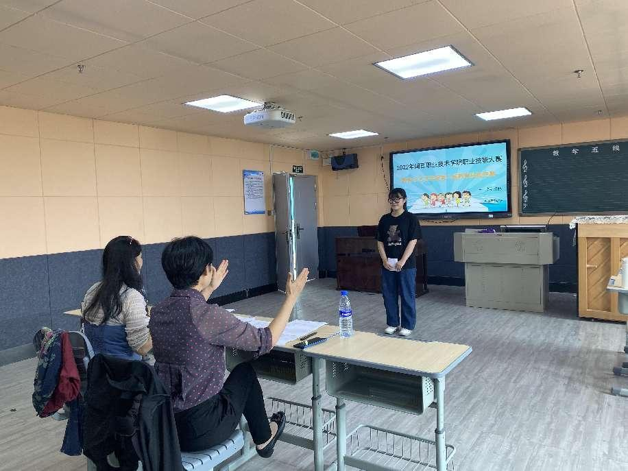 教学模拟是学前教育专业必备技能,内容涵盖五大领域,技能包含唱歌、跳舞、钢琴、绘画、讲故事。赛场上,参赛选手们提前到现场抽题,备考30分钟后进行试讲,选手进入场地后在十分钟内完成模拟教学。赛后,评委老师从教师口语、教态、授课内容设计等方面对选手进行综合考核并围绕考生试讲内容提问。