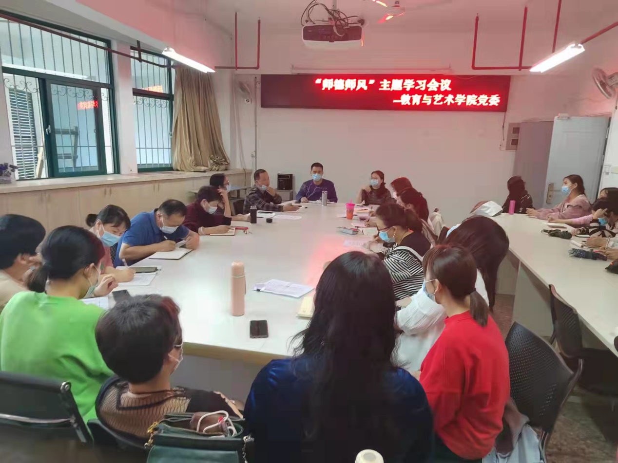 2022年3月21日,教育与艺术学院党委在教学综合大楼810会议室召开“师德师风”主题学习会议,党委委员及全体教职工出席此次会议。