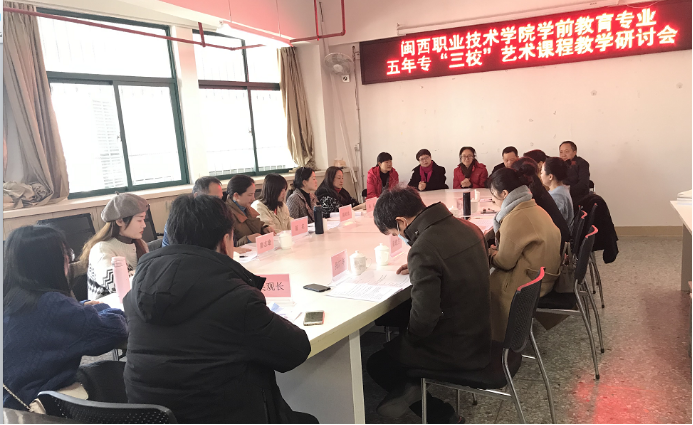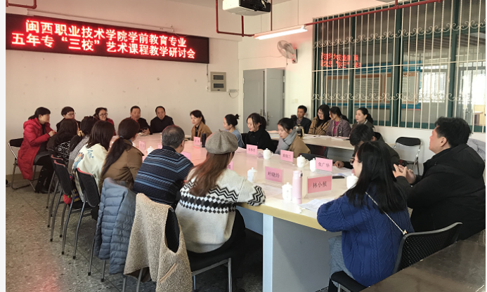 为了进一步规范学前教育“中高职艺术课程衔接“工作,2021年1月14日教育与艺术学院召集龙岩华侨职业中专、上杭职业中专、长汀职业中专学前教育专业艺术类教师20余位教师集中研讨“五年专” 人才培训方案中艺术类课程的设置、以及各类课程大纲中具体应完成的教学内容、及考核方式等。
