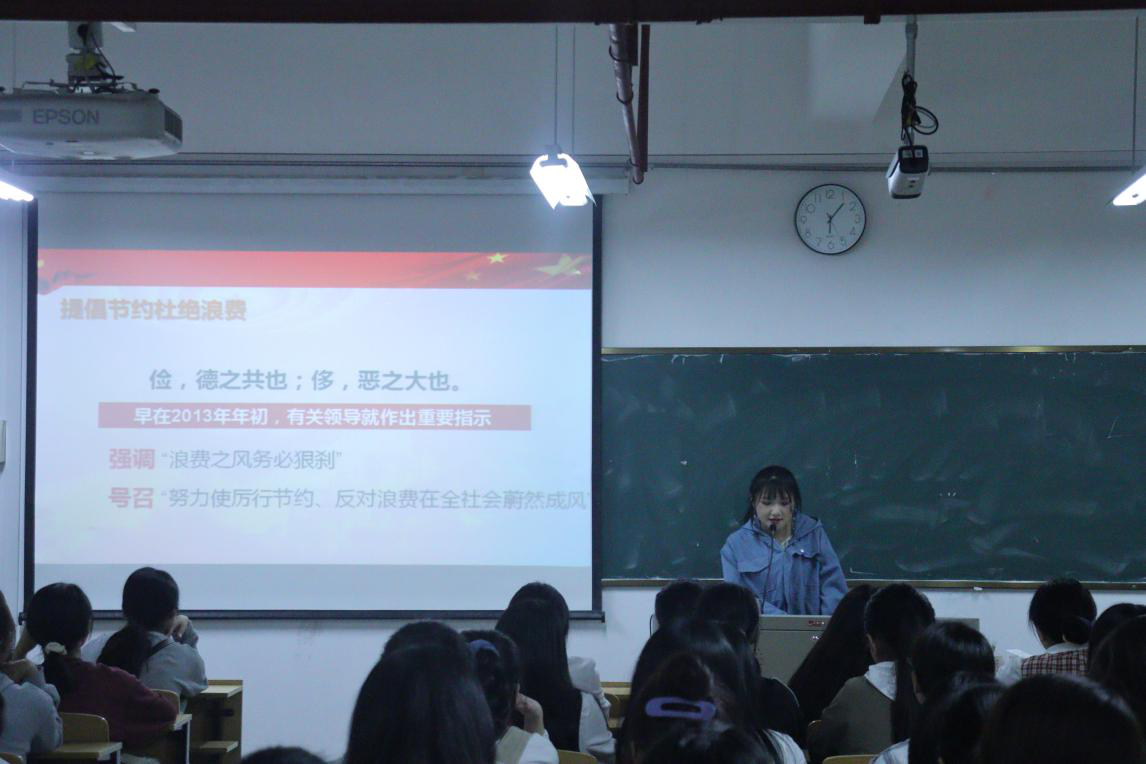 在活动中,林晓杰团总支将本次活动主题分为“杜绝餐饮浪费,从每餐做起”“树立节约理念,从节约做起”“加强节约管理,从细处做起”“营造节约氛围,从人人做起”四大版块进行宣讲,让大家了解到世界粮食问题的现状,粮食的来之不易以及粮食的可贵。