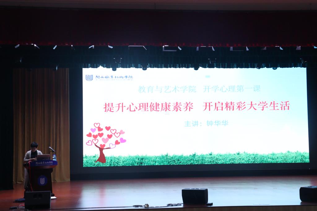 为了全面了解和把握我校2020级新生心理健康状况,建立新生心理健康档案,并及时筛查新生群体中高危人群,发现潜在心理问题,有针对性地开展心理健康教育工作。教育与艺术学院特于2020年11月12日晚在大匠堂举行了《新生心理第一课》讲座,由心理辅导老师钟华华担任主讲人。