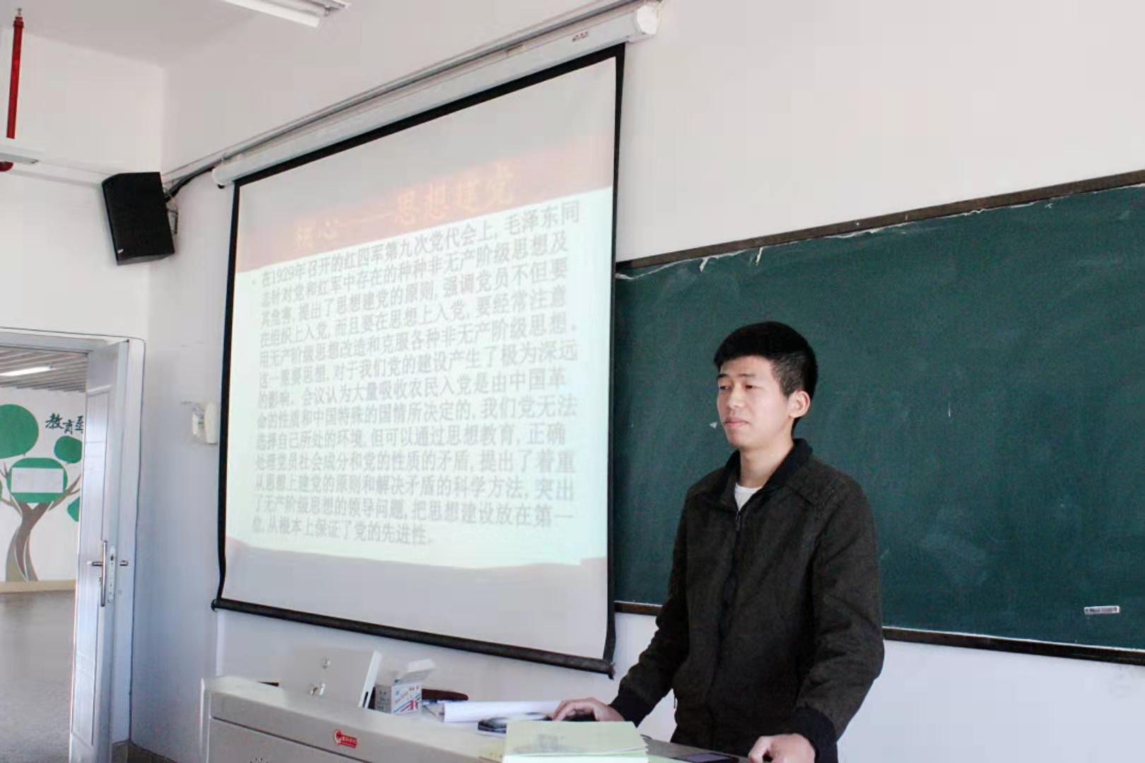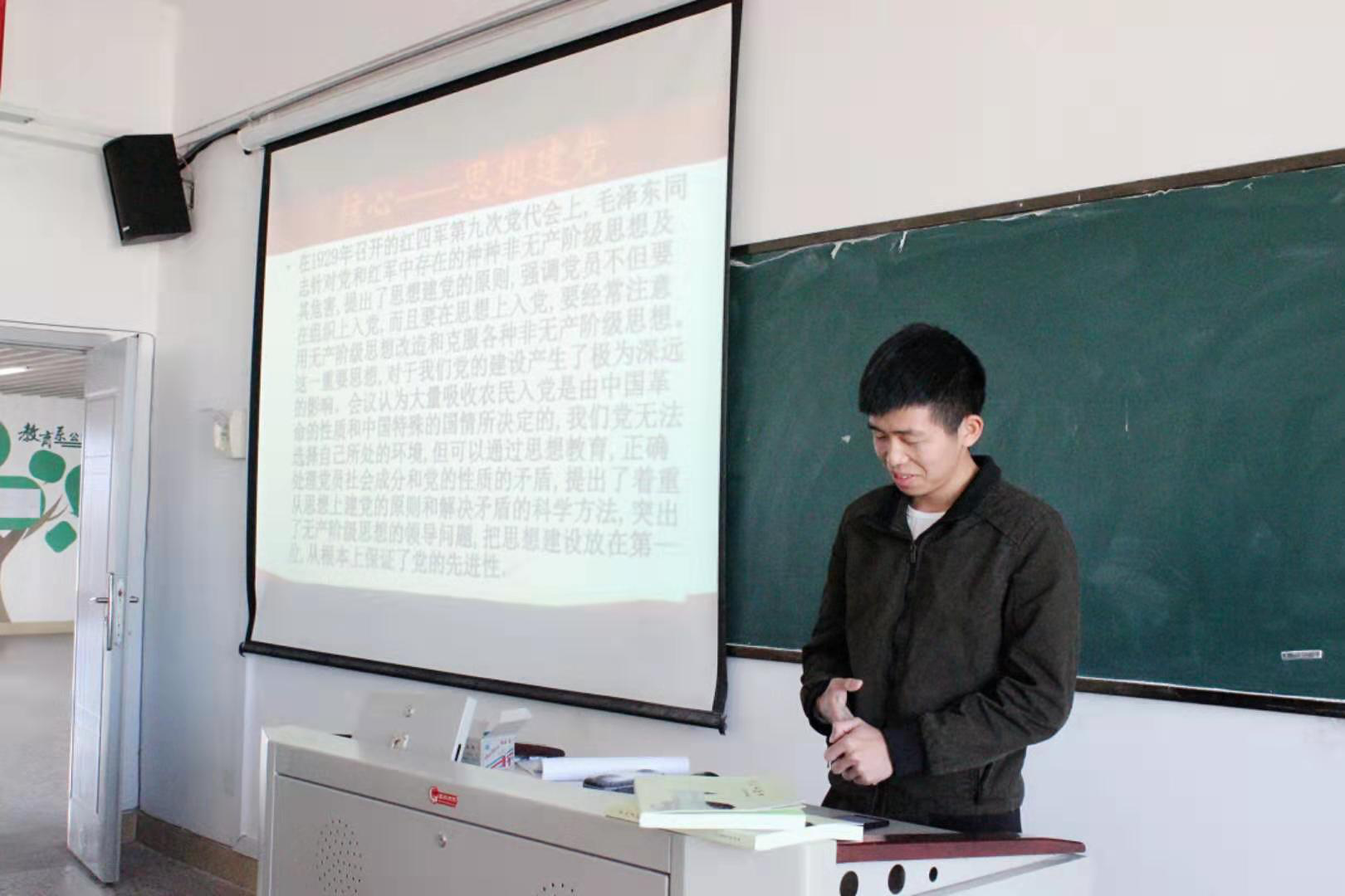 大三团总支乐立键将此次主题分为“古田会议背景”、“古田会议主要内容”、“古田会议的现实意义”三大部分进行宣讲,让大家更为深入地领会古田会议的精神实质和丰富内涵。