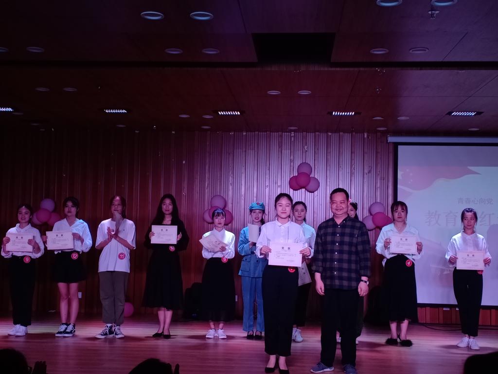 经过初赛的选拔,12位参赛选手脱颖而出晋级决赛。决赛现场,选手们个个精神饱满,端庄大方,激情昂扬。围绕“青春心向党建功新龙岩”这一主题,以革命英雄事迹、红色经典战役、著名历史事件等红色经典故事为内容,用生动的语言和深厚的情感演绎着一个个感人至深、催人奋进的红色经典故事。经过激烈的角逐,余世敏同学获得一等奖,江丽如、吴选琴同学获二等奖,蒋榕娟、钟倞倞、张怡萱同学获三等奖,赖伟玲、冯旭瑶、杨慧莹、邓恬涓、赖雅琴、范玉洁同学获得优秀奖。