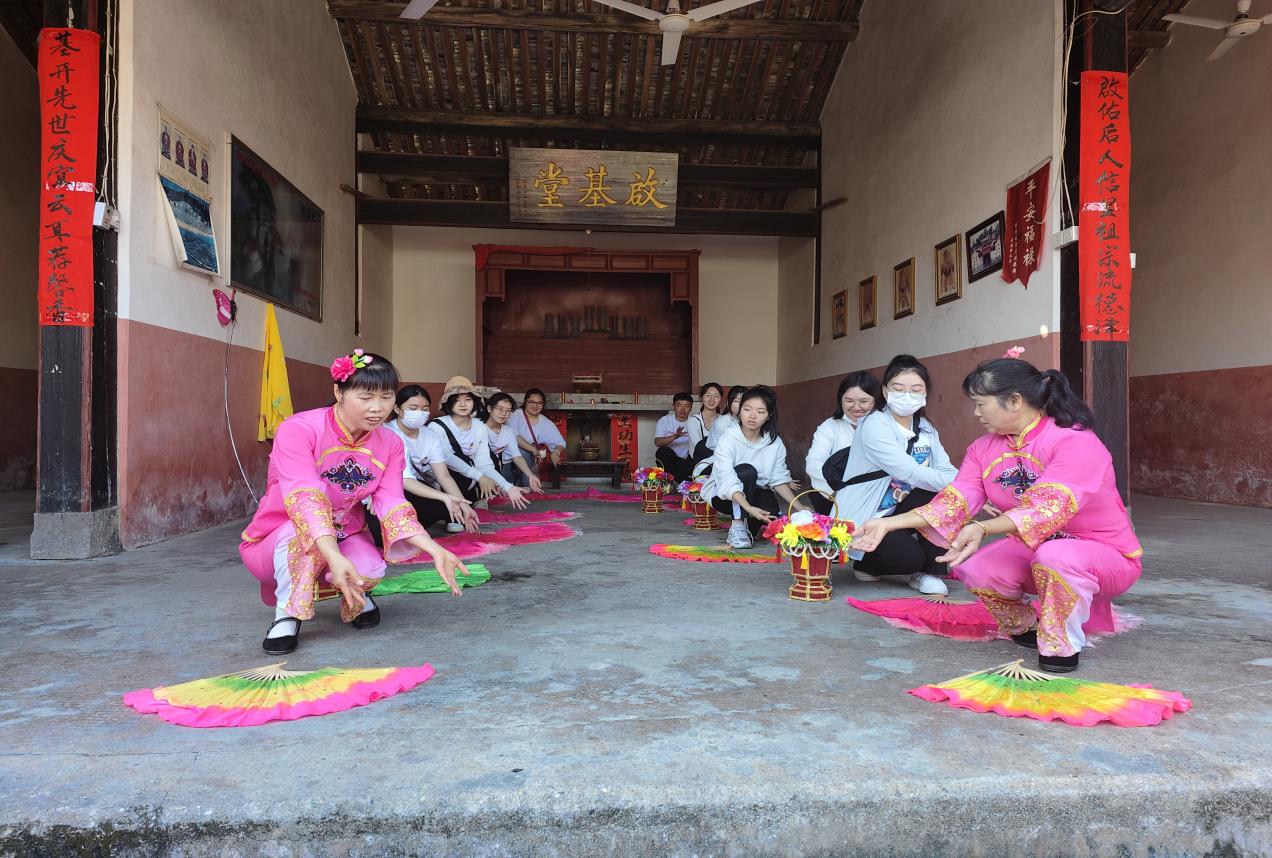 实践队到达黄地村后,当地非遗文化传承者向志愿者们介绍了有关采茶灯的历史,她们还向志愿者们传授了采茶灯表演技巧,让志愿者们更加深入感受到采茶灯的独特魅力。临近饭点,迎来了志愿者们最期待的环节——亲手制作传统美食。按照厨娘阿姨所教的制作步骤,大家分工合作,有的志愿者在制作过程中展现出手艺精巧的一面,获得了大家高度评价。最后在大家的努力下,成功完成了饺子、艾果、酸萝卜等美食。品尝过农家午餐后,志愿者们参观了孝廉文化馆种德居,屋内刻有壁画,主要反映了儒孝仁德的思想,也体现了古村落质朴的魅力,让志愿者们深深感受到种德居浓厚的文化底蕴。结束参观活动后,志愿者们来到农田,进行农耕活动,通过辛勤劳作,体会到劳动人民的不易,进一步理解了劳动的价值。在返校的时候,志愿者们带着自己亲手制作的美食,互相分享着这一天的收获。